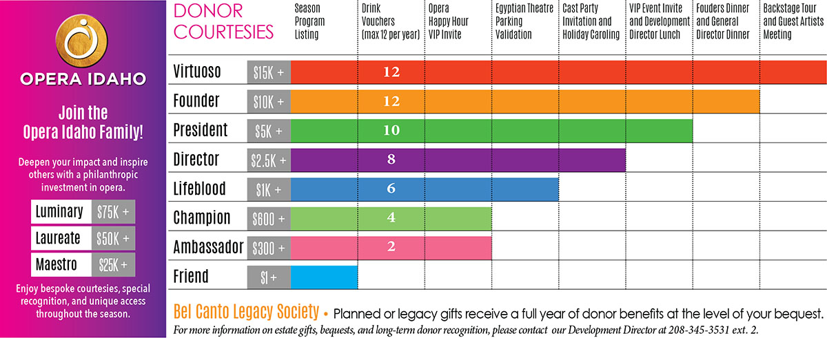 Call Krista at 208-345-3531 ext. 1. Prefer snail mail? Send your donation to Opera Idaho, 515 South 9th Street, Boise, ID 83702.